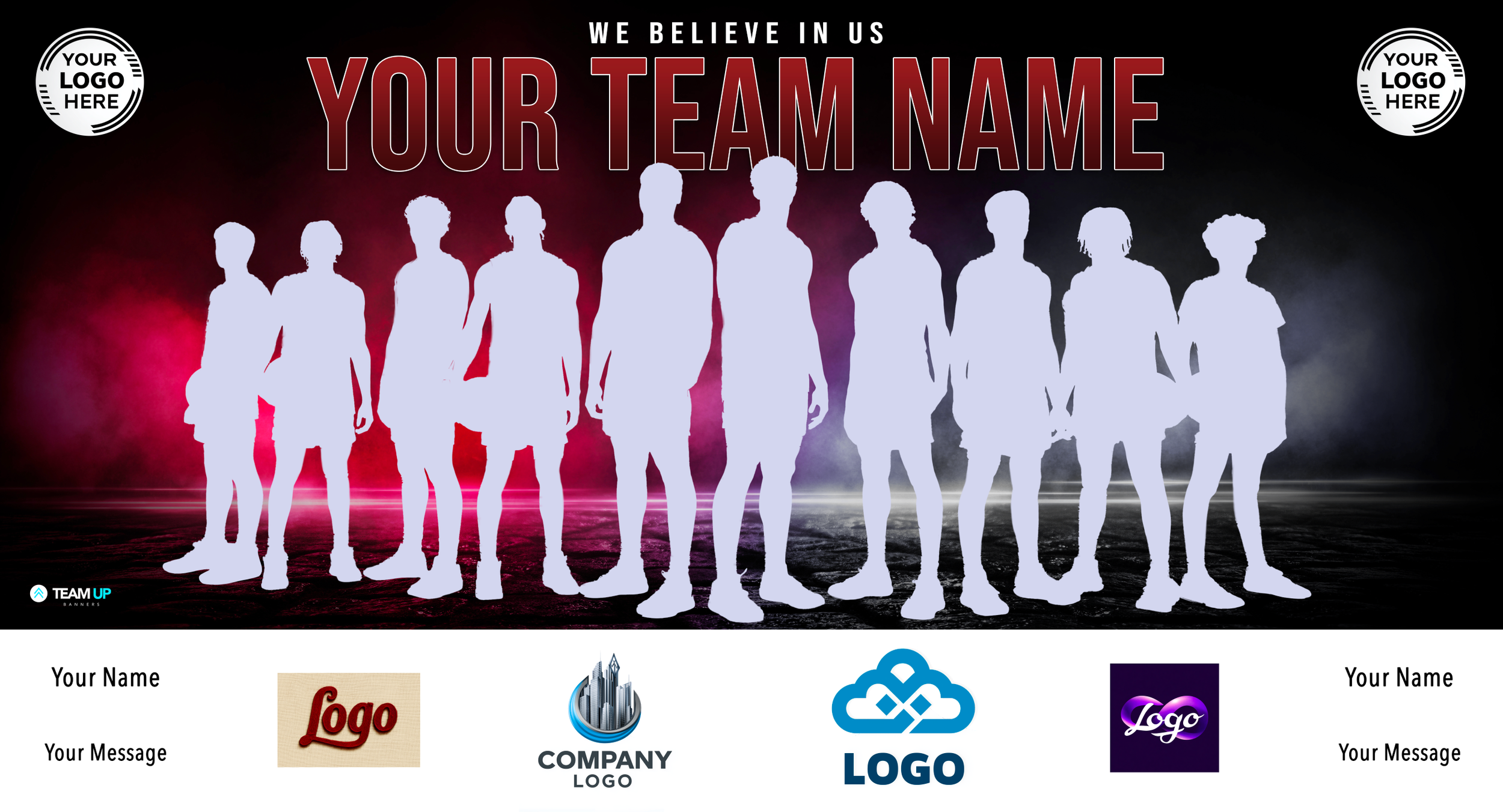 They’ll have their name or logo printed on our 8x4 ft team banner, proudly displayed at games and events.